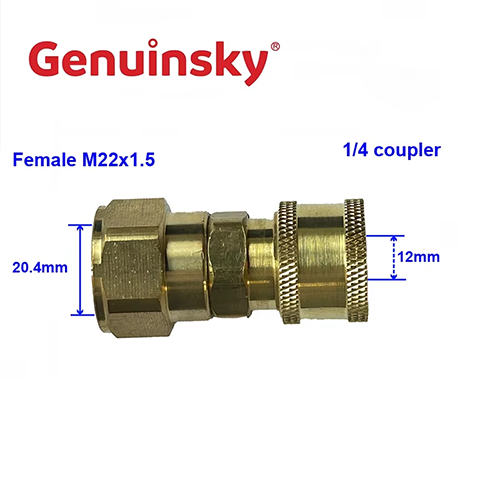 1/4 인치 커플러는 파이프, 케이블 또는 장비 인터페이스를 연결하는 데 사용되는 작은 커넥터입니다. 내부 스레드는 신뢰할 수있는 연결을 위해 M22 × 1.5 사양, Double-Touch Brass Quick 커넥터, 20 SFA, 1/4 인치입니다. 제품은 황동으로 만들어졌습니다. 황동 재료의 장점은 부식 저항으로 복잡한 사용 시나리오에 적응하고 제품의 사용 시간을 연장 할 수 있습니다.