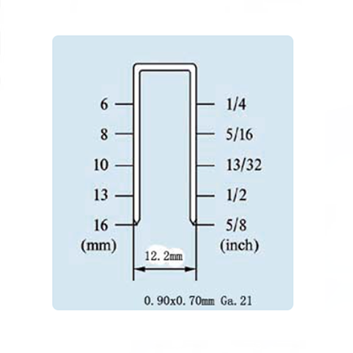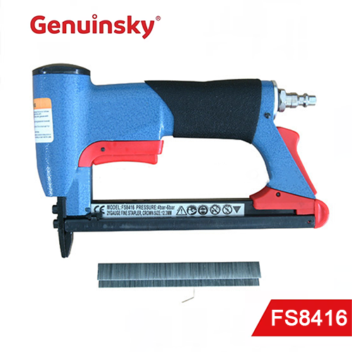 8416 Air Fine Crown Stapler는 클래식 한 무거운 공기 네일 총입니다. 적절한 네일 GA21, 0.90x0.70mm, 어깨 거리 12.2mm, 손톱 높이는 6mm, 8mm, 10mm, 13mm, 16mm (1/4, 5/16, 3/8, 1/2, 5/8 인치) 일 수 있습니다.