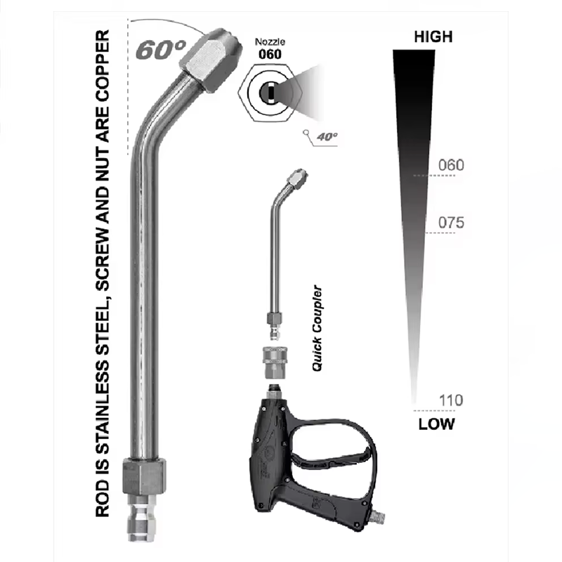 이 구부러진 노즐의 크기 디자인은 정확하고 60도 구부러진 60도. 작동은 매우 유연 할 수 있습니다. 노즐 사양은 060이고 노즐의 각도는 40도이므로 청소 작업에서 플러싱하기에 적절한 물 흐름을 형성 할 수 있습니다. Nilfisk와 Wap은 매우 유명한 청소 장비 브랜드입니다. 이 두 브랜드의 세척 건은 안정적인 고압 수 유량을 가지고 있으며 세척을 정확하게 제어 할 수 있으므로 많은 시나리오에서 청소 작업에 널리 사용됩니다. Genuinsky의 구부러진 노즐은 WAP/Nilfisk 건에 맞아 양 당사자의 협력으로 에어컨을 편리하게 청소할 수 있으며 에어컨 내부의 먼지와 먼지를보다 효율적으로 청소할 수 있습니다. 에어컨의 정시 청소는 사람들에게만 적합 할뿐만 아니라 건강에 좋으며 에어컨 자체의 서비스 수명을 연장 할 수 있습니다.