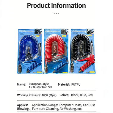 유럽식 공압 에어 블로우 건 키트에는 더스트 건, 텔레스코픽 스프링 기관 및 퀵 커넥터가 포함되어 있어 상자에서 꺼내기만 하면 신속하게 조립하고 사용할 수 있습니다. 먼지총은 검정색, 파란색 및 기타 색상으로 제공됩니다. 본체는 날씬한 스테인리스 배럴을 채용. 이 디자인을 통해 키보드 키, 자동차 내부 틈, 에어컨 콘센트 또는 산업 기계 부품 청소와 같이 청소가 쉽지 않은 좁은 틈새에 장비를 쉽게 접근할 수 있습니다. 고정된 플라스틱 공기 노즐을 사용하면 청소하는 공기 흐름이 더욱 집중되고 정확한 먼지 제거가 가능합니다. 총기 본체는 인체공학적 손잡이를 채택하여 손바닥에 딱 맞을 뿐만 아니라 한 손으로 쥐고 먼지를 제거할 수 있어 장시간 사용해도 피곤함이 쉽지 않습니다. 손잡이에는 사려 깊은 미끄럼 방지 패턴이 있어 그립의 안정성을 향상시키고 미끄러지기 쉽지 않습니다. 총 본체 자체는 고밀도 강화 플라스틱으로 만들어져 경도가 높습니다. 일상적인 사용 중에 약간의 충격과 마찰이 있어도 쉽게 깨지지 않아 제품의 내구성이 더욱 높아집니다. 그리고 재료 밀도가 금속보다 훨씬 낮아 더스트 건 전체가 더 가볍고 휴대성이 뛰어납니다. 공압 연결을 지원할 수 있으며 상부 기관 및 공기 공급원을 통해 생성된 공기 흐름이 더 강해질 수 있어 가벼운 먼지 제거부터 중간 정도의 먼지 제거까지 일상적인 청소 및 산업 유지 관리에 만족할 수 있습니다.