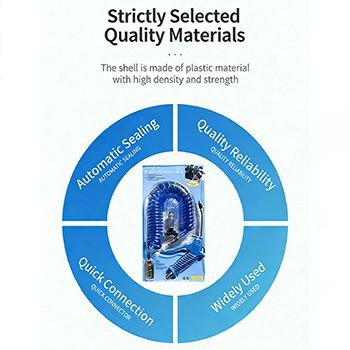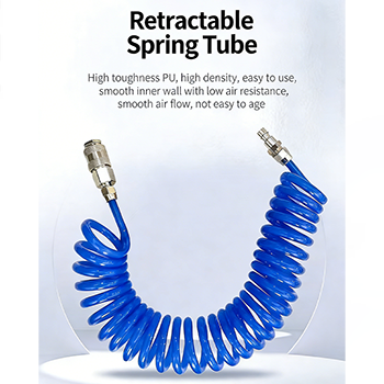 슈트의 텔레스코픽 스프링 기관은 PU 소재로 만들어졌으며 선택할 수 있는 색상은 검정, 파랑, 빨강의 세 가지입니다. 매우 견고한 PU 소재의 내벽이 매끄러워 바람 저항이 낮아지고 공기 흐름이 원활해집니다. 동시에 PU 소재는 내마모성과 내노화성이 우수하고 작동 압력이 1000Mpa에 도달할 수 있어 먼지 제거 작업에 강력한 공기 흐름을 제공하여 먼지 제거 작업을 더욱 효율적으로 만듭니다. 기관 양쪽 끝에 있는 퀵 커넥터도 매우 실용적입니다. 플러그인 설계에는 도구가 필요하지 않으며 에어건 및 공기 공급원과의 연결이 몇 초 안에 완료될 수 있어 작업 효율성이 크게 향상됩니다.