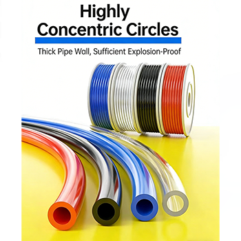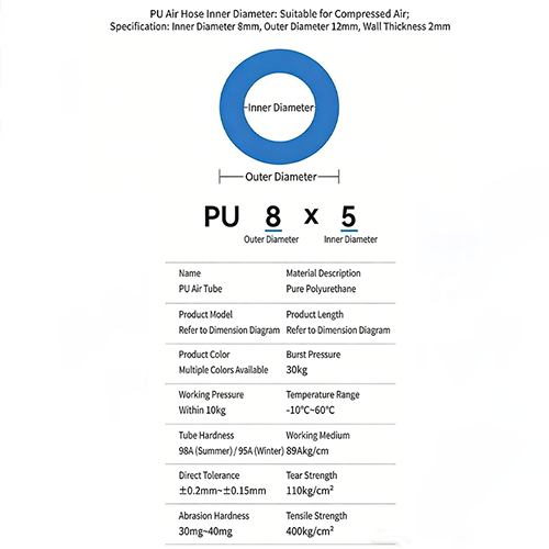 우선, 핵심 매개 변수 중 고순도 PU 방폭 에어 호스는 압축 공기 전달을 위해 특별히 설계되었습니다. 제품의 핵심 사양은 PU 8×5(내경 8mm, 외경 12mm, 벽 두께 2mm)이며, 이는 시장에 있는 대부분의 공압 공구 및 자동화 장비의 인터페이스 요구 사항에 적응할 수 있습니다. 자체의 고도로 동심원 구조로 인해 공기 흐름의 안정적인 전달을 보장하는 동시에 기관 자체의 폭발 저항력이 향상됩니다. 자동차 제조 및 전자 부품 조립 분야에서는 파이프라인에 대한 안전성 및 안정성 요구 사항이 상대적으로 높기 때문에 기관의 안정성이 매우 중요합니다.