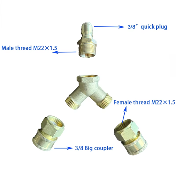 Genuinsky의 전체 구리 3 방향 커넥터는 주로 자동차 세척 분야에 사용됩니다. 작업 과정에서 여러 장비의 동시 급수 공급을 실현할 수 있으며 동시에 수요에 따라 언제든지 전환 할 수 있습니다. 따라서 청소 효율을 크게 향상시킵니다. Genuinsky 3 방향 커넥터의 두 가지 모델이 있습니다. 첫 번째는 1/4 "플러그 및 2pcs 1/4"커플러가있는 3 방향 커넥터입니다. 1/4 "플러그의 한쪽 끝에는 직경이 11.7mm 인 빠른 플러그 설계가 있고 다른 쪽 끝은 수컷 스레드 M22 × 1.5입니다. 두 개의 1/4"커플러의 한쪽 끝은 암 스레드 M22 × 1.5이고 다른 쪽 끝은 1/4 커플러입니다. 1/4 인치 크기는 자동차 세탁기, 스프레이 건 및 기타 장비에 유연하게 적응할 수 있습니다. 두 번째는 3/8 "플러그와 2pcs 3/8"커플러가있는 3 방향 커넥터입니다. 3/8 "플러그. 한쪽 끝은 빠른 플러그 디자인이고 다른 쪽 끝은 수컷입니다. 스레드 M22 × 1.5. 두 개의 3/8"커플러의 한쪽 끝은 암 스레드 M22 × 1.5이고 다른 쪽 끝은 3/8 Big Couler입니다. 3/8 인치 사양은 대형 차량 청소 또는 산업 장비 청소와 같은 더 큰 흐름의 사용에 적용하여 청소 효율을 크게 향상시킬 수 있습니다. 두 모델의 재료는 전체 구리이며 구리 재료는 일반적으로 부식성이 우수합니다. CAR 세척과 같은 복잡한 작업 환경에서는 비교적 안정적인 연결을 유지할 수 있습니다. 동시에, 구리는 또한 특정 강도와 경도를 가지고 있으며, 동시에 탁월한 연성은 고압 청소 환경에 신뢰할 수있는 선택입니다.