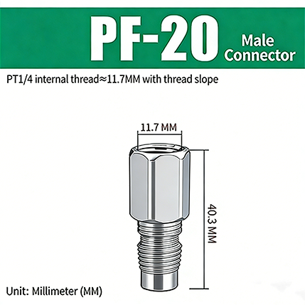 1.PF-20. 파이프 나사 1/4, 나사 경사가 있으며 나사 부분의 직경은 약 11.7mm이고 제품의 전체 길이는 40.3mm입니다.