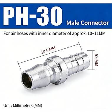 2. PH-30. 내부 직경이 약 10-11mm이고 커넥터 끝 부분의 직경이 10.5mm이고 전체 길이가 52mm인 기관에 적합합니다.