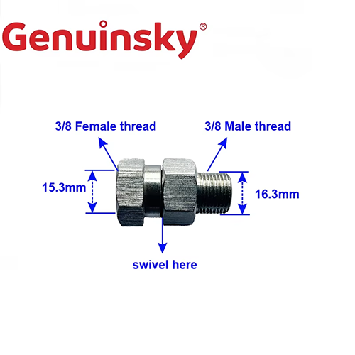 이 스테인레스 스틸 스위블 피팅은 한쪽 끝에서 3/8 암 스레드이며, 직경은 약 15.3mm이고 다른 쪽 끝에 3/8 수컷 실, 직경은 약 16.3mm입니다. 특히 중간 부분을 회전시킬 수 있습니다. 이 기능은 고압 호스 및 자동차 세탁 장비의 스프레이 건에 적합 할 수 있습니다. 청소 작업에서 사용에 따라 다양한 각도를 조정하여 파이프 왜곡 문제를 해결할 수 있습니다. 회전 구조를 사용하면 유연한 연결을 실현할 수 있습니다.